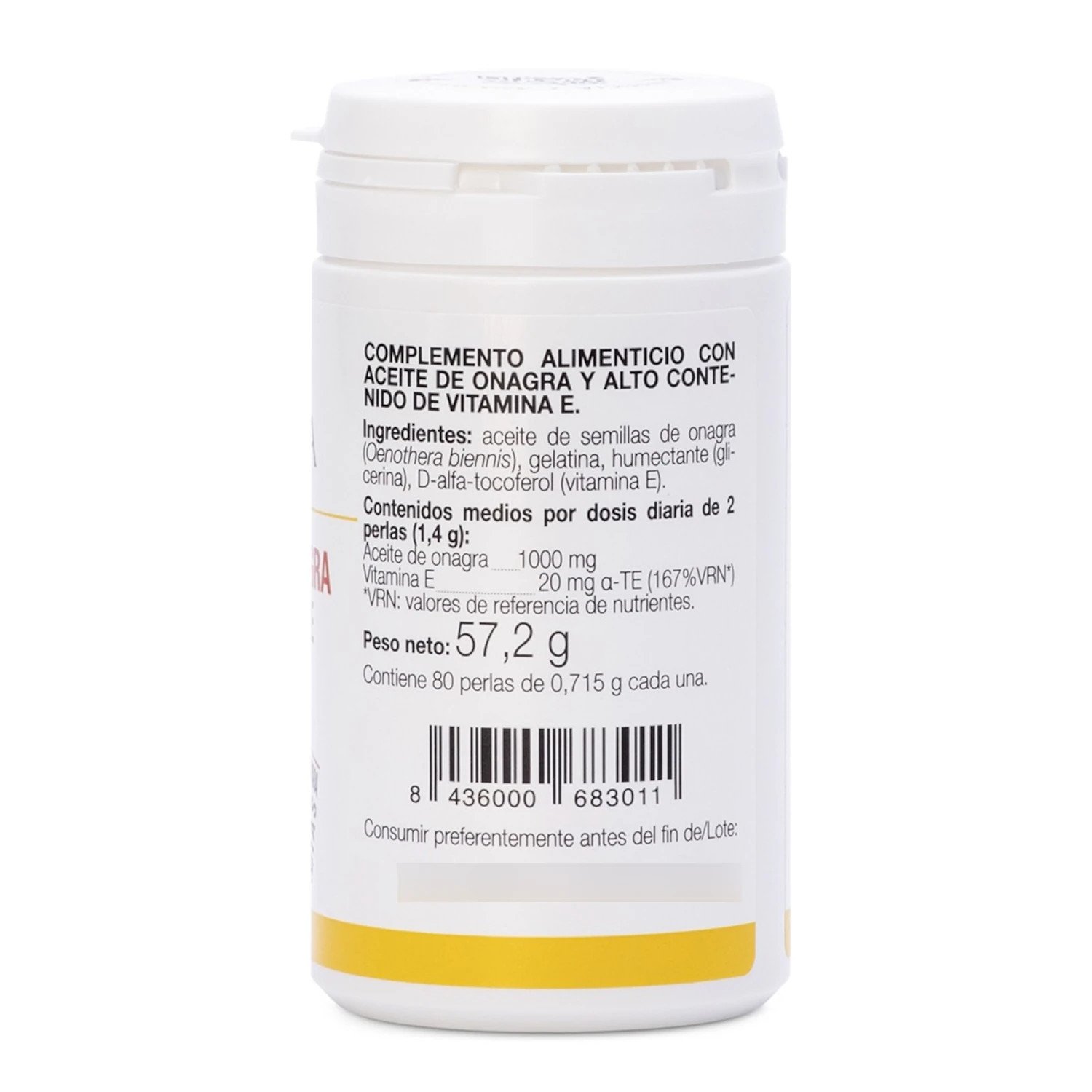 · 2 perlas (1,4 g): Aceite de onagra 1000 mg, vitamina E 20 mg α-TE (167%VRN*)
