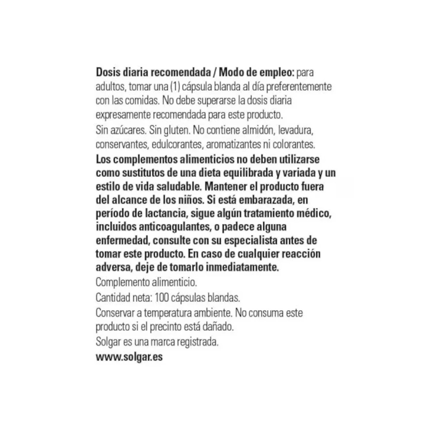 · Para adultos, tomar 1 cápsula blanda al día, preferentemente con las comidas.