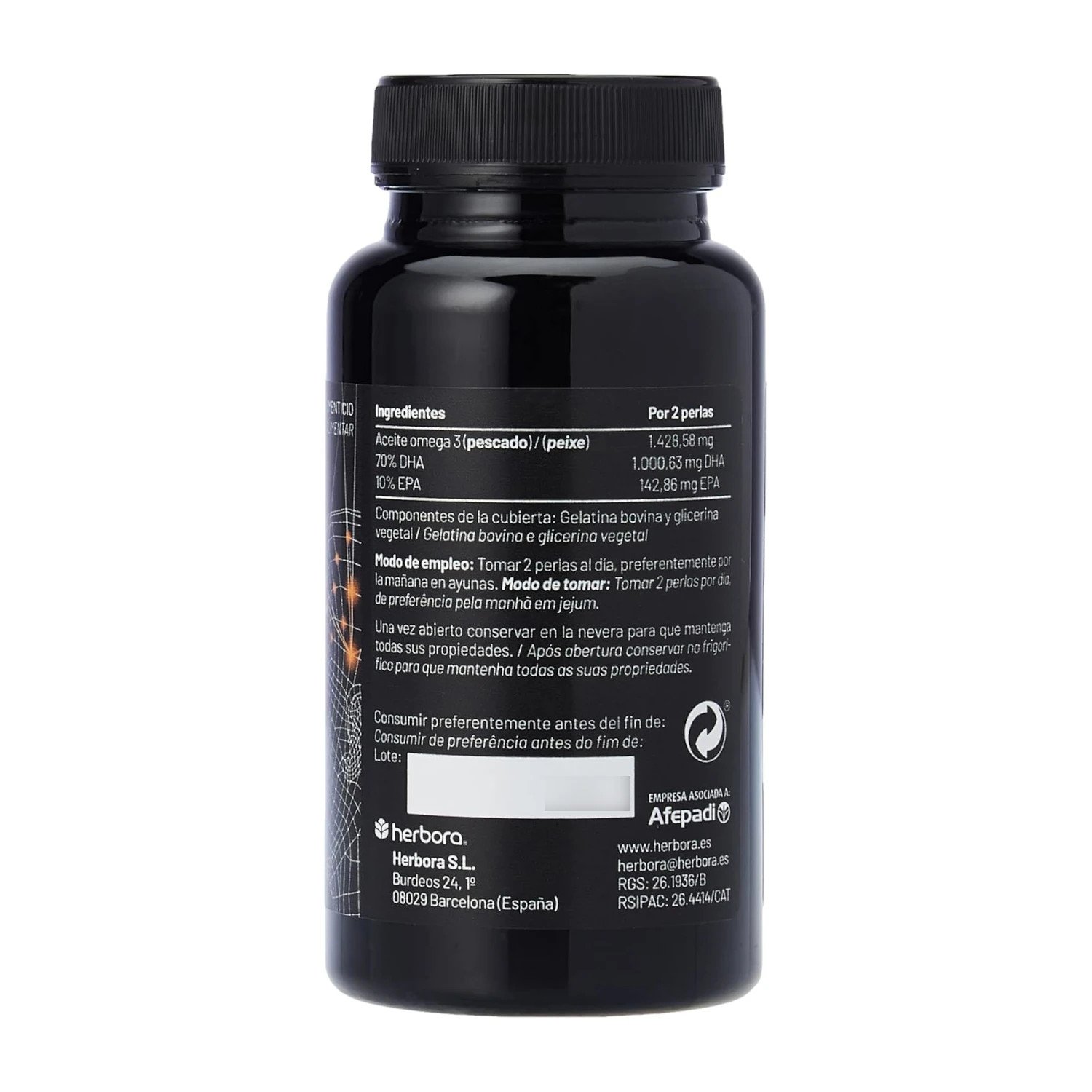 · Aceite de pescado azul (atún y anchoas) (pescado) (50% DHA/10% EPA): 2.000 mg