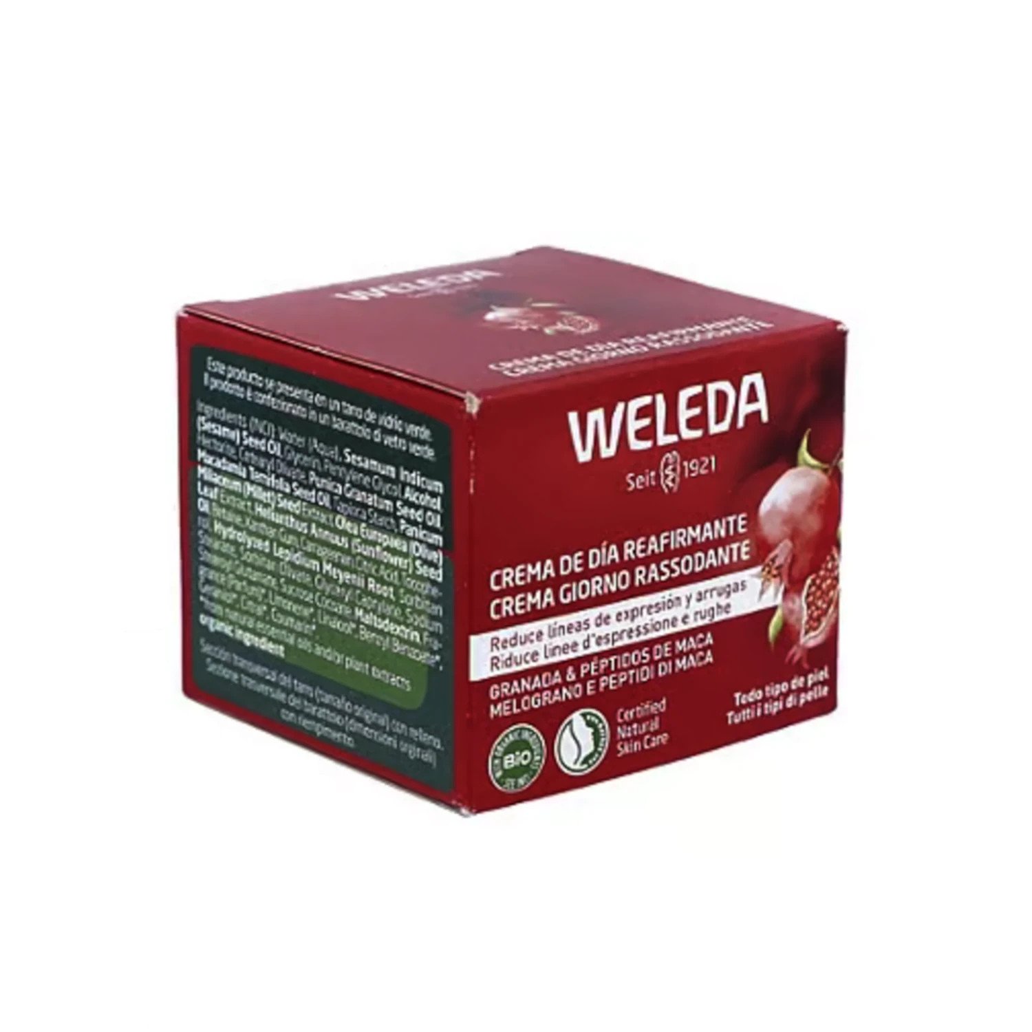 La Crema de Día Reafirmante de Granada de Weleda es un producto diseñado para el cuidado avanzado de la piel, ofreciendo beneficios como firmeza, hidratación y luminosidad. Su fórmula innovadora combina ingredientes naturales altamente eficaces, entre ellos el aceite de semilla de granada BIO y los péptidos de raíz de maca BIO, los cuales potencian la regeneración natural de la piel y mejoran su elasticidad.