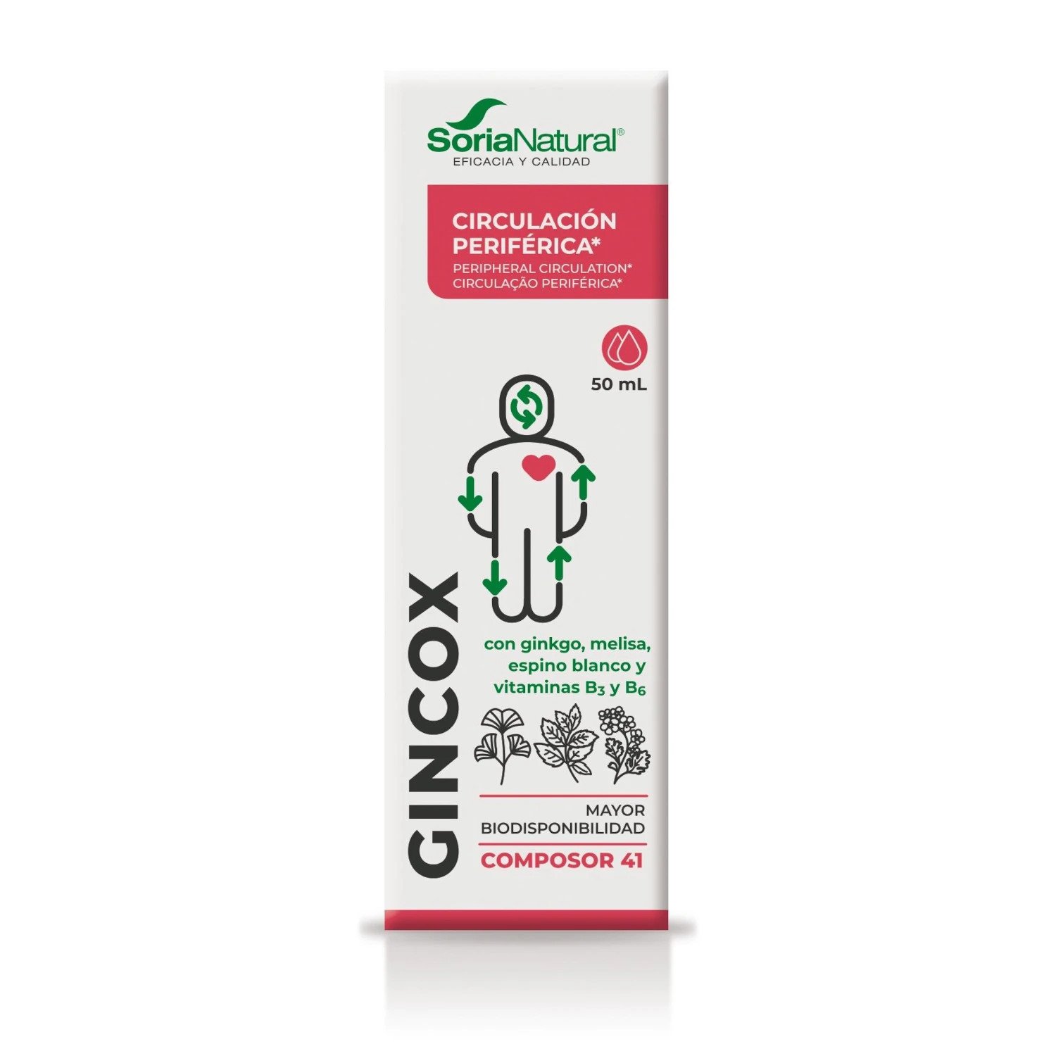 Composor 41 Gincox de Soria Natural es un suplemento natural formulado para optimizar la función cerebral y la circulación sanguínea. Este producto combina extractos de plantas con propiedades vasodilatadoras, antioxidantes y cardiotónicas, lo que lo convierte en un aliado eficaz para el bienestar cardiovascular y cerebral.