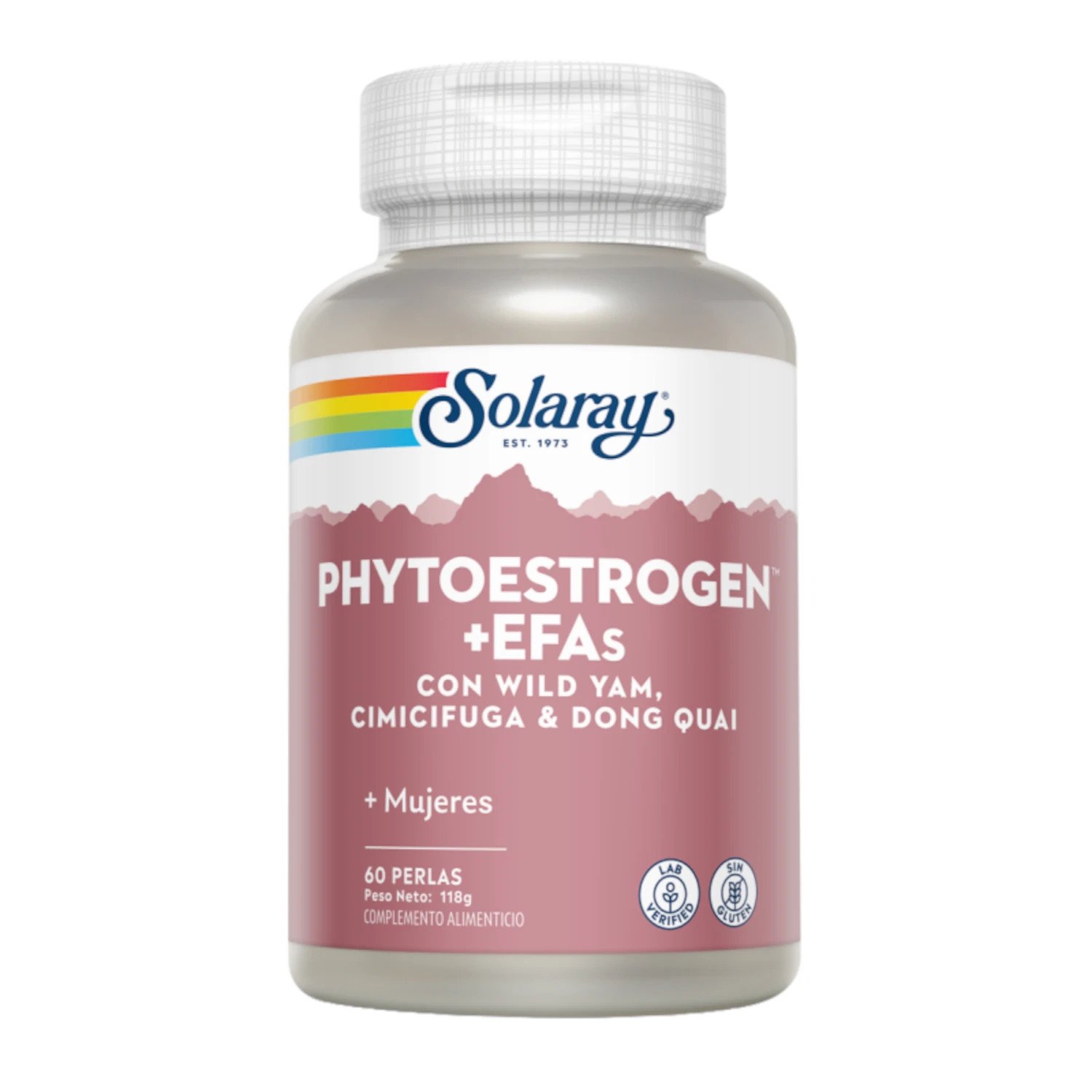 Phytoestrogen + Efas de Solaray es un complemento nutricional diseñado para mejorar los síntomas asociados a la menopausia y prevenir los accidentes cardiovasculares, gracias a su contenido de fitoestrógenos vegetales presentes de forma natural en plantas de uso tradicional.