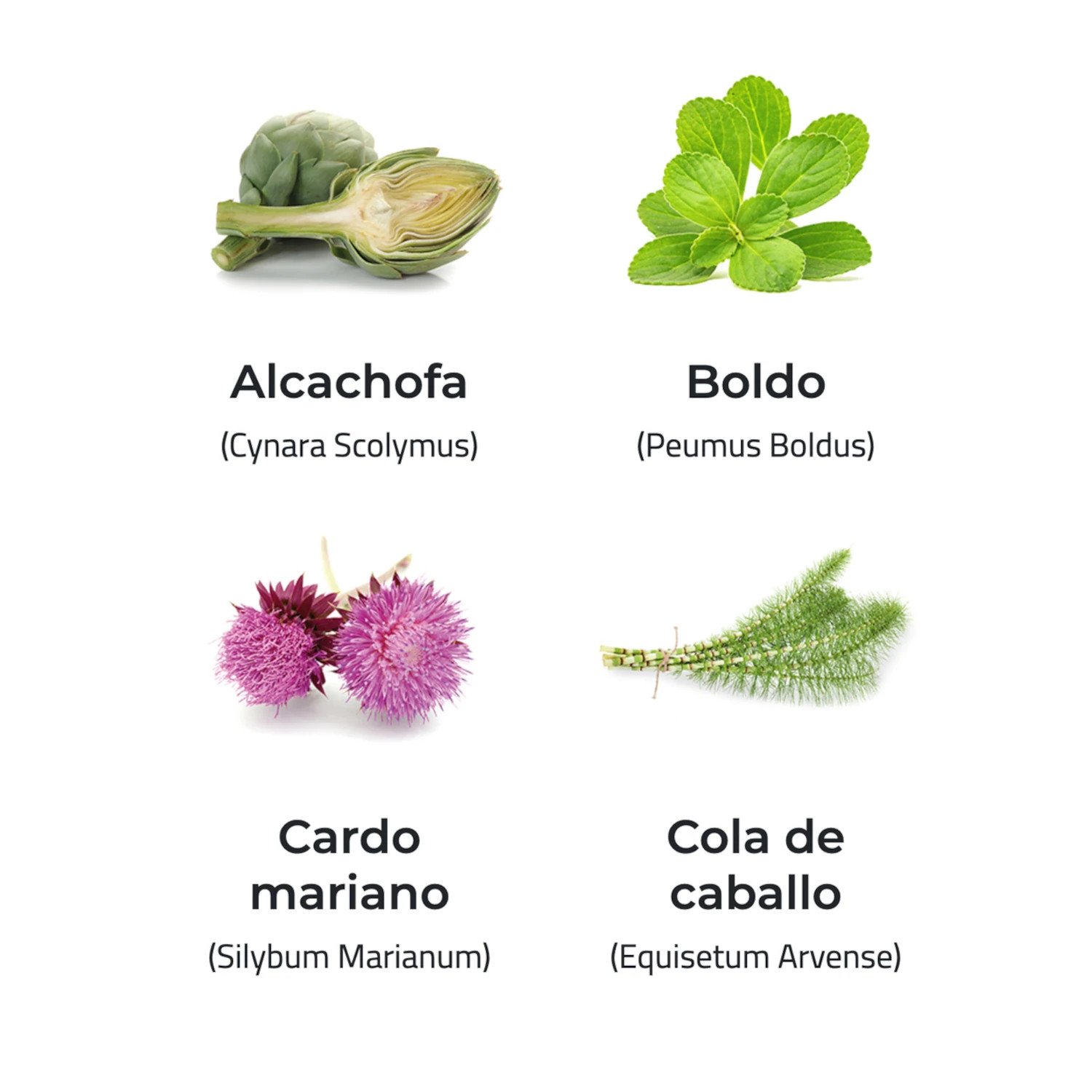 Formulado con cardo mariano, alcachofa, té verde, bioflavonoides, cola de caballo, boldo, vitaminas B-1, B-2 y Biotina que tienen propiedades que ayudan a la eliminación de líquidos, detoxificante y antioxidante.