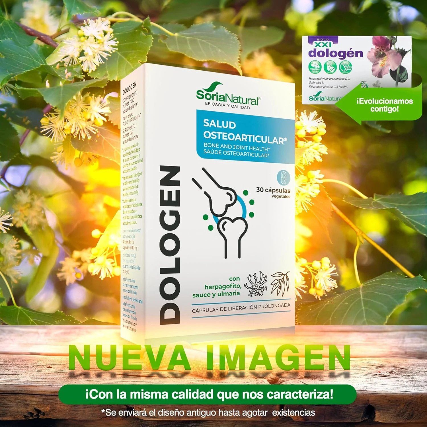 Dologen de Soria Natural es un complemento alimenticio diseñado específicamente para abordar problemas articulares y musculares. Este producto, elaborado con ingredientes naturales como Harpagofito, sauce y flor de ulmaria, destaca por su composición libre de colorantes, conservantes y aditivos, lo que garantiza una fórmula más pura y respetuosa con el organismo.