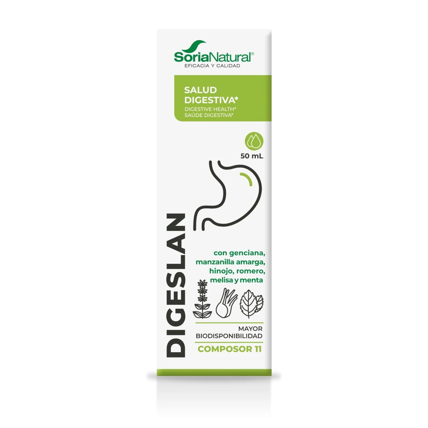 Composor 11 Digeslan de Soria Natural es un suplemento natural diseñado para mejorar la digestión y aliviar diversos trastornos digestivos. Su fórmula combina extractos de plantas como manzanilla, melisa, genciana, hinojo y romero, conocidas por sus propiedades digestivas, antiespasmódicas y carminativas. Además, contiene aceite esencial de menta, que ayuda a calmar las náuseas, y bromelaína, una enzima digestiva extraída de la piña que optimiza el proceso digestivo.