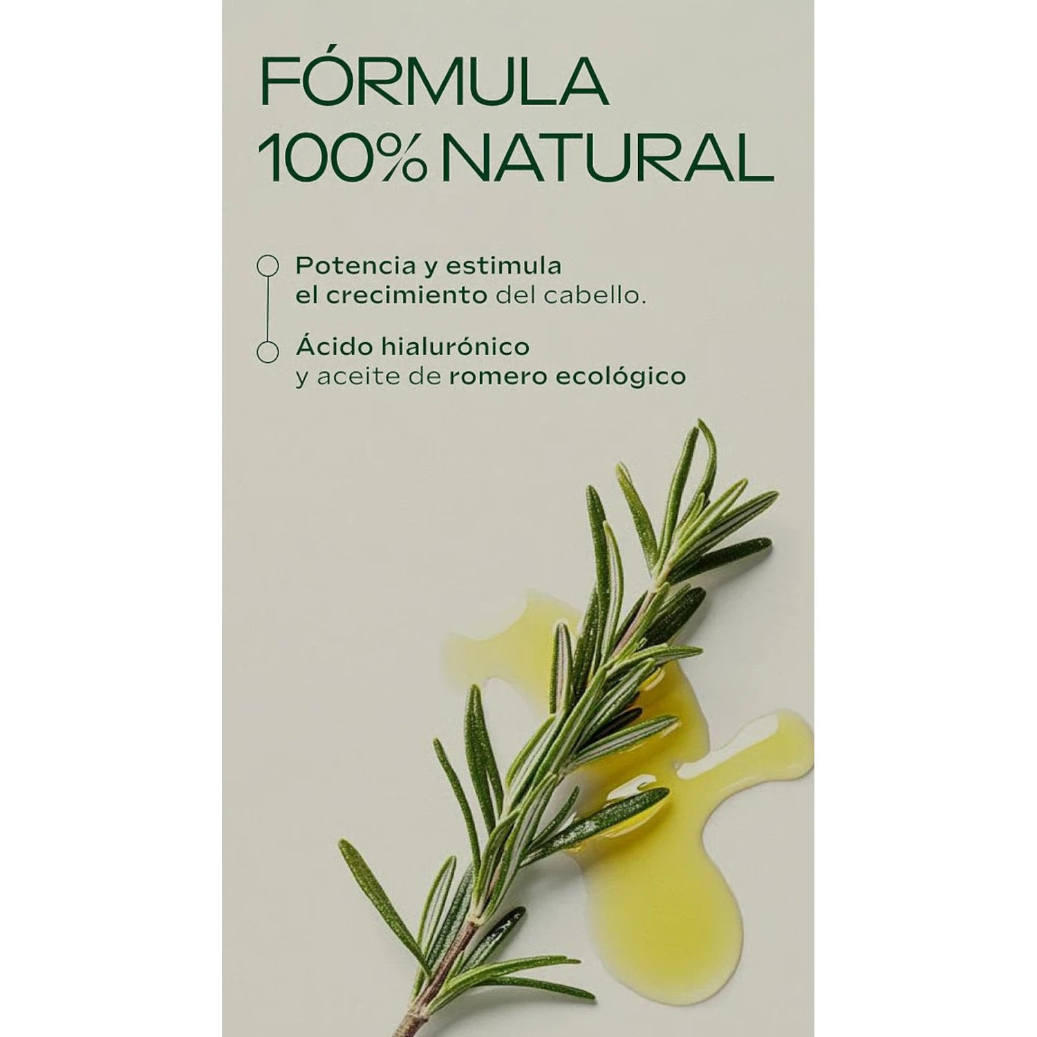 · El aceite esencial de romero estimula el cuero cabelludo, mientras que los pétalos de trébol rojo y la raíz de bardana nutren profundamente, aportando flexibilidad y brillo