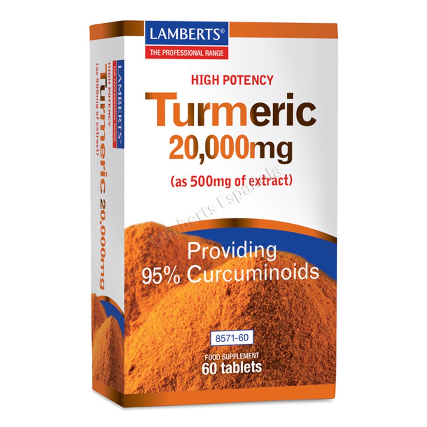 Cúrcuma 20.000 mg de Lamberts es un suplemento natural de alta potencia diseñado para mejorar procesos inflamatorios y problemas digestivos. Este producto contiene un extracto natural de rizoma o raíz de cúrcuma longa, aportando curcuminoides o curcuminas que contienen tres compuestos polifenólicos diferentes: la curcumina, demetoxicurcumina y bisdemetoxicurcumina.