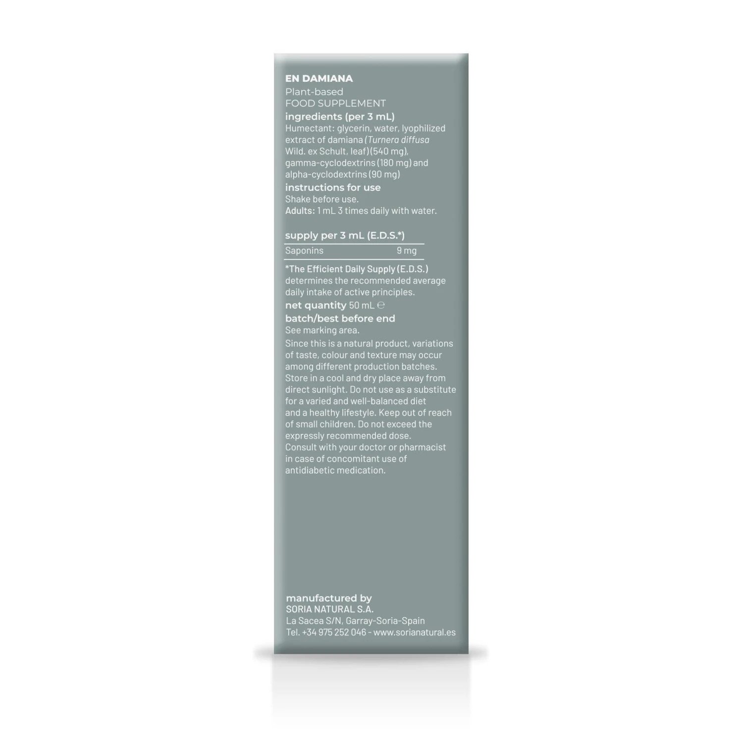 Damiana de Soria Natural es un complemento alimenticio reconocido por sus propiedades estimulantes y revitalizantes, especialmente en el ámbito del bienestar sexual y la vitalidad general.
