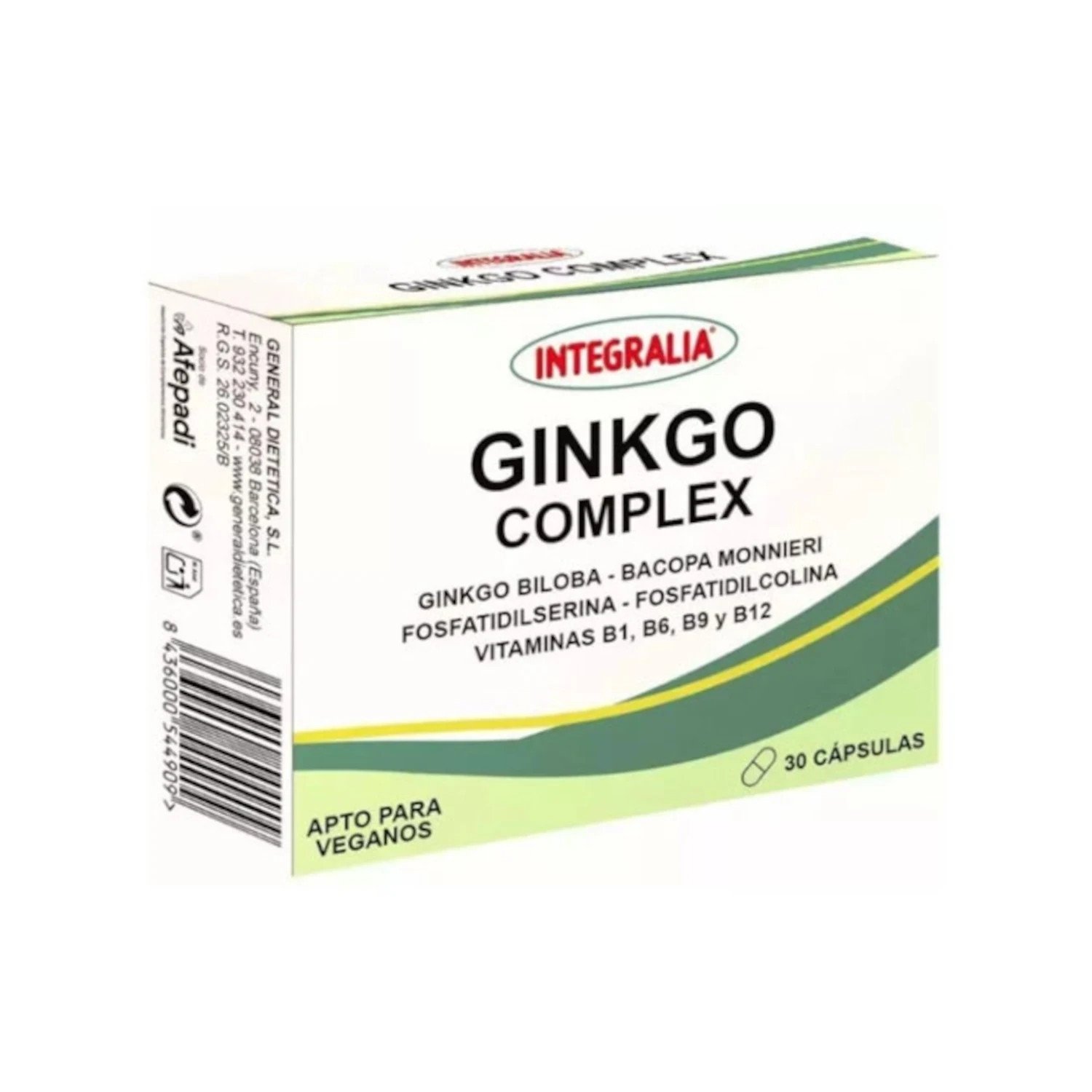 Ginkgo Complex de Integralia es un suplemento diseñado para apoyar la función cognitiva y circulatoria. Contiene una combinación de ingredientes clave como extracto de ginkgo biloba, fosfatidilserina, fosfatidilcolina, extracto de bacopa y vitaminas del grupo B (B1, B6 y B12).