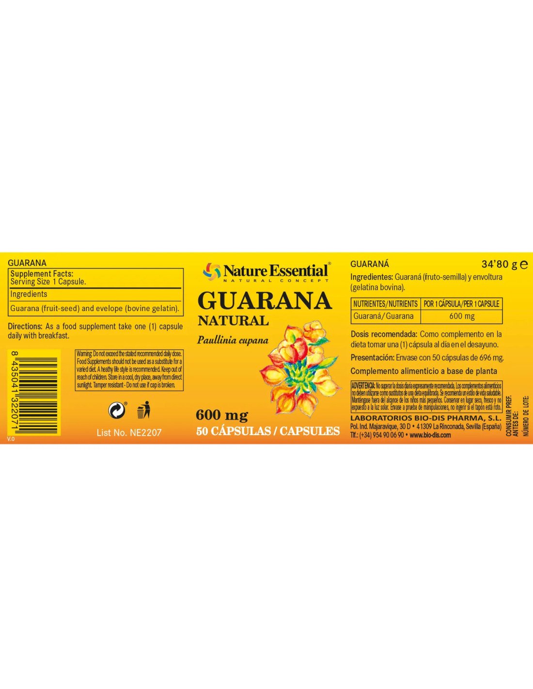 Guaraná de Nature Essential es un suplemento alimenticio formulado a partir de las semillas del guaraná, una planta originaria de la selva amazónica reconocida por sus propiedades estimulantes y beneficiosas para la salud. Este producto ofrece una fuente concentrada de cafeína natural, que actúa como su principal ingrediente activo. Su consumo está asociado con el aumento de energía, la mejora del enfoque mental y el incremento del estado de alerta, convirtiéndolo en un aliado ideal para combatir la fatiga y mantener un rendimiento óptimo durante el día.