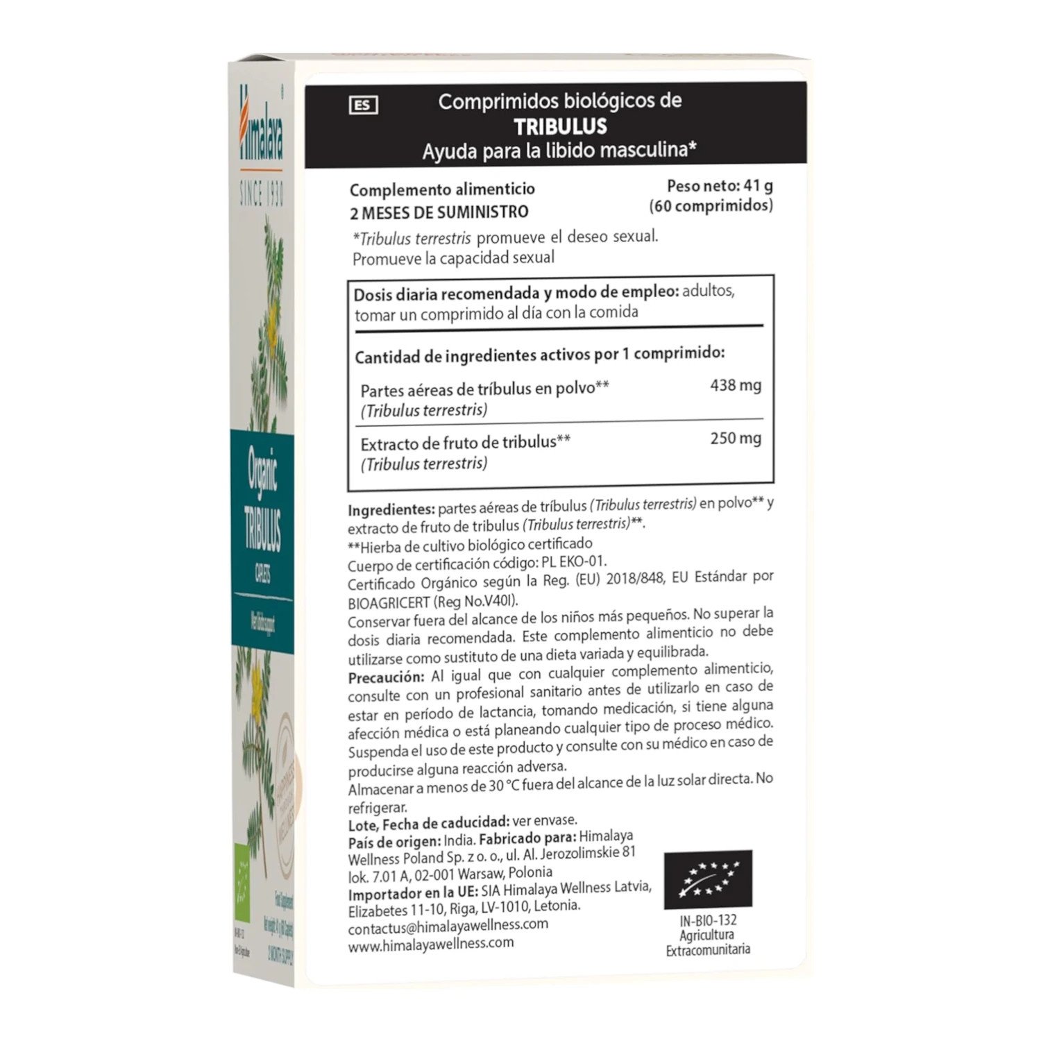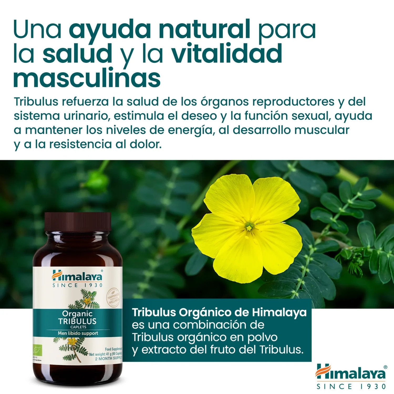 Tribulus Organic de Himalaya es un suplemento natural diseñado para mejorar la salud masculina y el bienestar general. Utiliza una fórmula basada en Gokshura (Tribulus terrestris), combinando polvo orgánico y extracto de fruta de Tribulus para ofrecer beneficios integrales. Entre sus propiedades destacadas, se encuentra su capacidad para estimular de forma natural los niveles de testosterona endógena, sin recurrir a agentes hormonales externos.