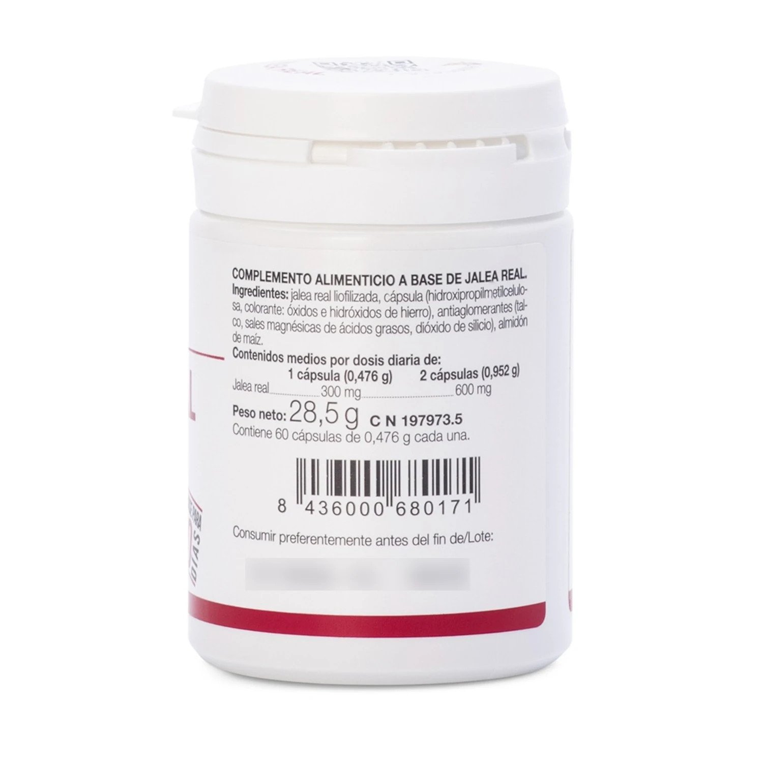· 1 cápsula (0,47 g): jalea real 300 mg.