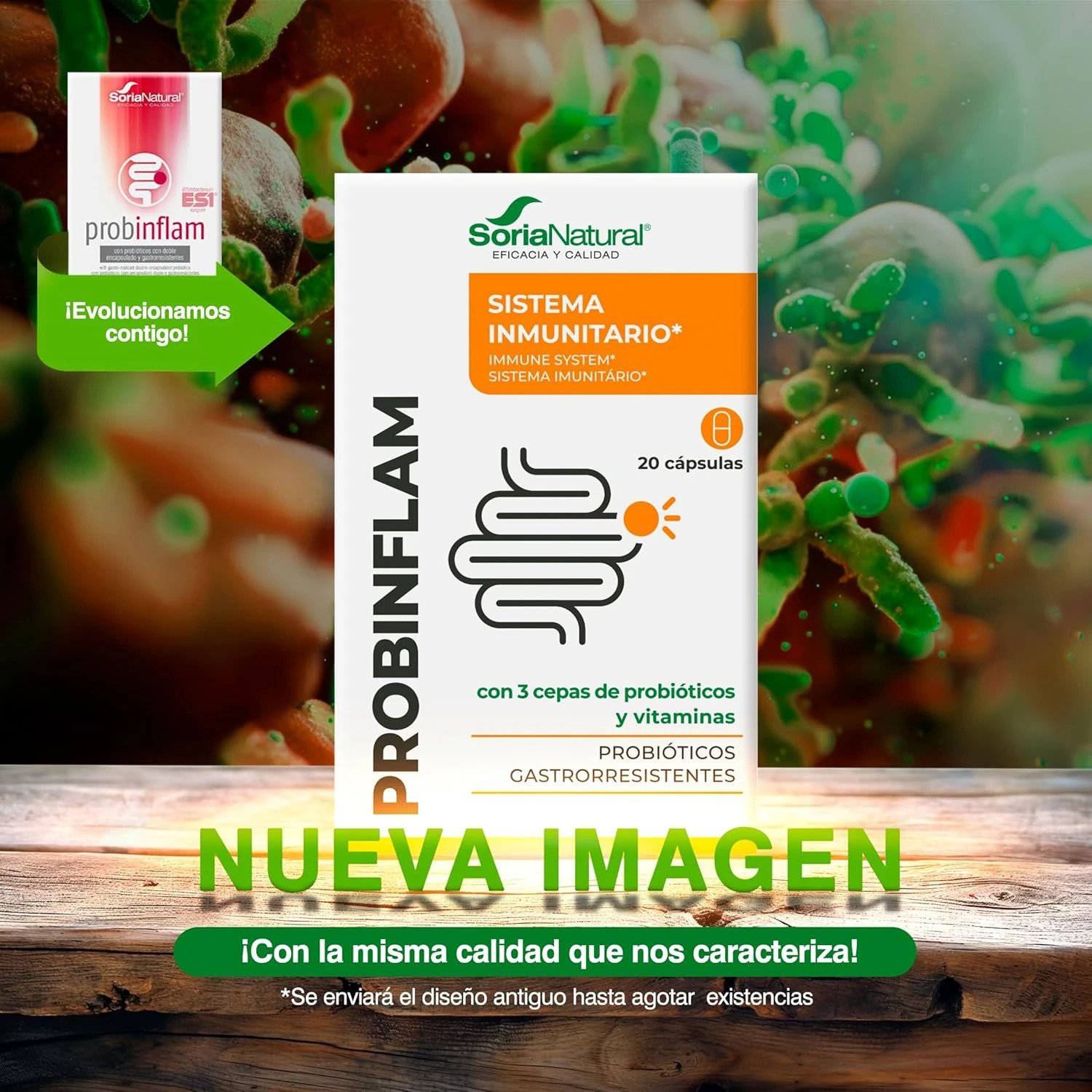 Probinflam de Soria Natural es un complemento alimenticio formulado para reducir la inflamación y la hiperreactividad de la mucosa intestinal, siendo particularmente útil en enfermedades inflamatorias crónicas y patologías relacionadas con el sistema inmune. Este producto destaca por su contenido en Bifidobacterium longum ES1®, una cepa bacteriana patentada con propiedades terapéuticas avaladas científicamente. Esta cepa es especialmente beneficiosa en el manejo de la enfermedad celíaca, ya que contribuye a contrarrestar la respuesta inmune inapropiada al gluten en personas genéticamente predispuestas.