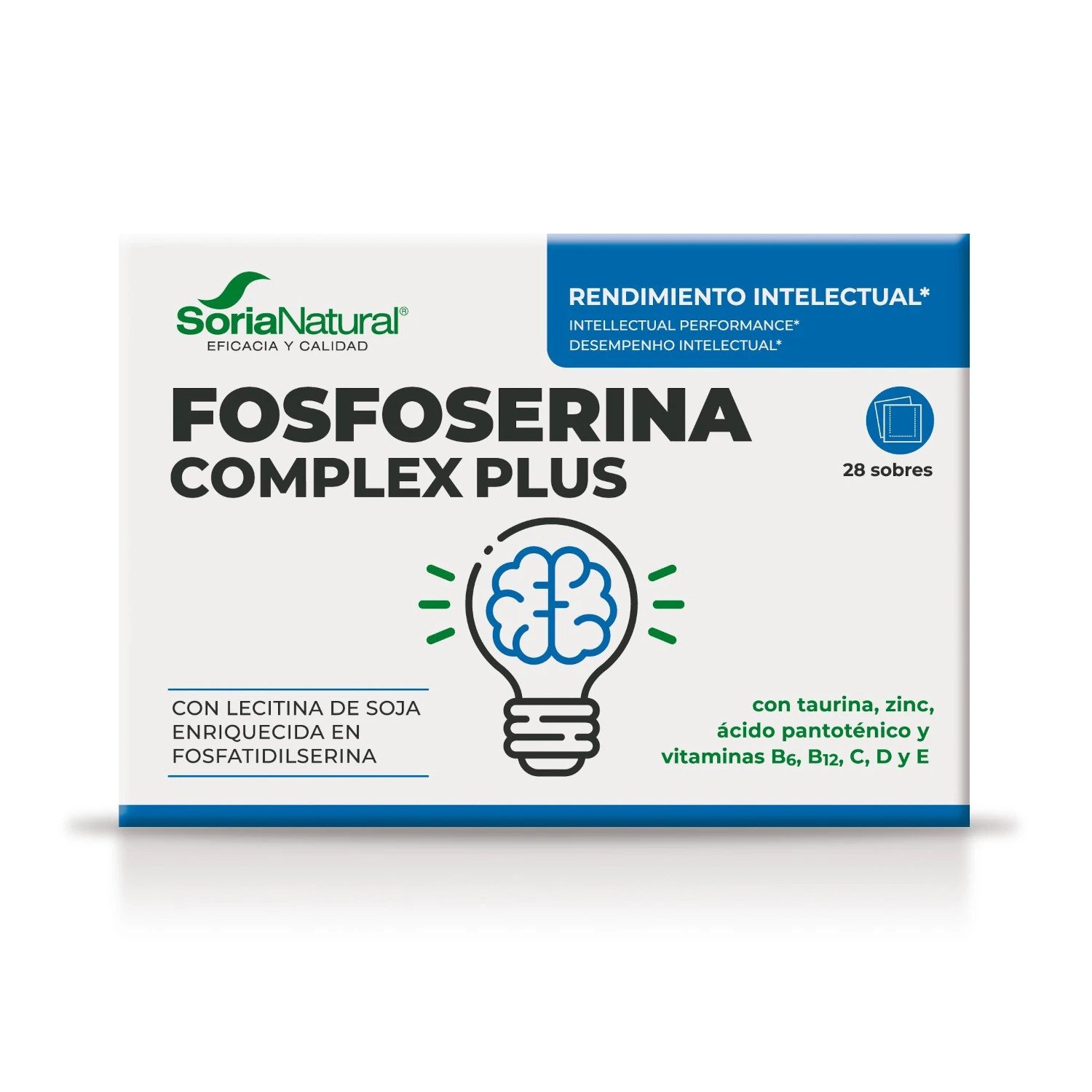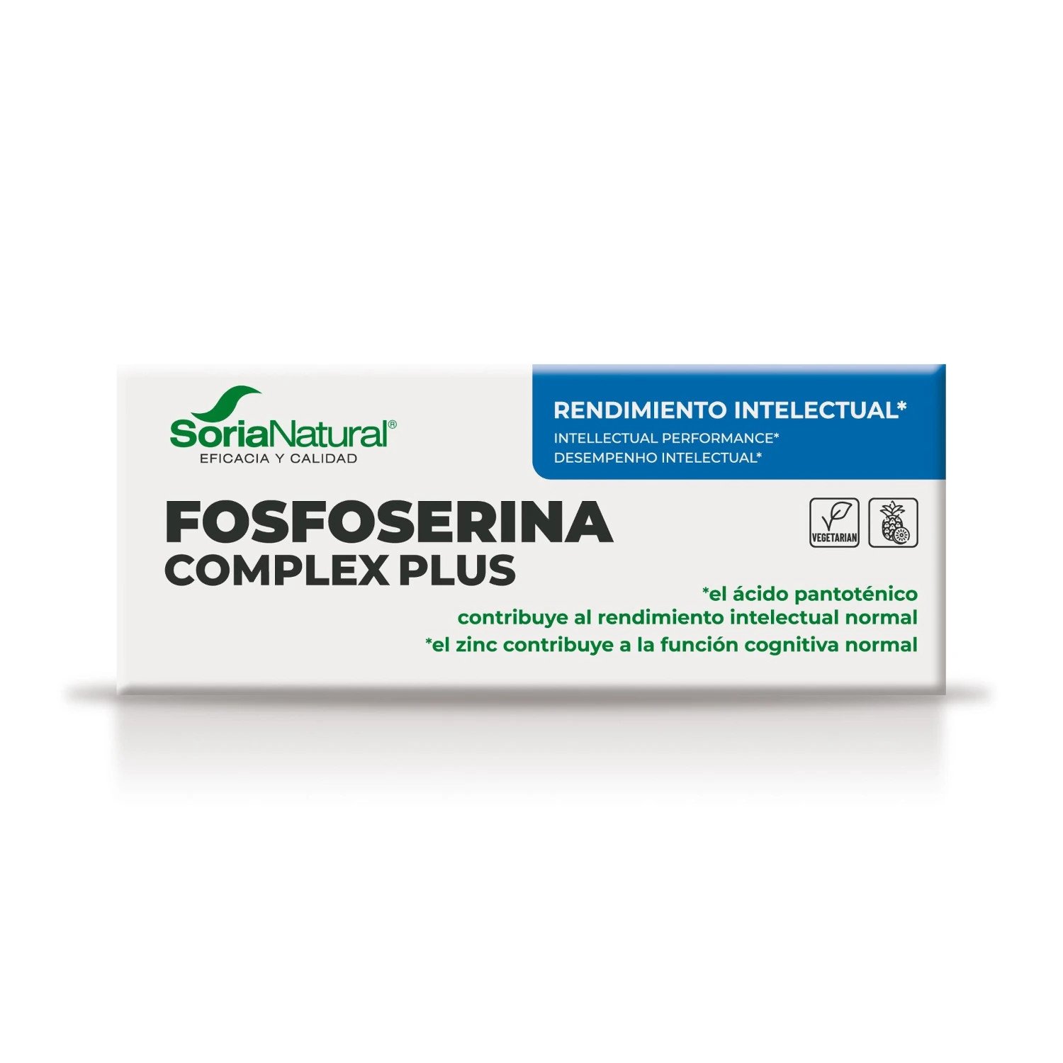 Fosfoserina Complex Plus de Soria Natural es un suplemento alimenticio formulado para mejorar la función cognitiva y el rendimiento intelectual. Este producto destaca por su alto contenido en fosfatidilserina, un fosfolípido esencial que favorece el funcionamiento óptimo de las membranas celulares, especialmente en el cerebro. Su fórmula contiene una concentración de fosfatidilserina 20 veces superior a la lecitina de soja convencional, lo que lo convierte en una opción eficaz para apoyar la salud cerebral.