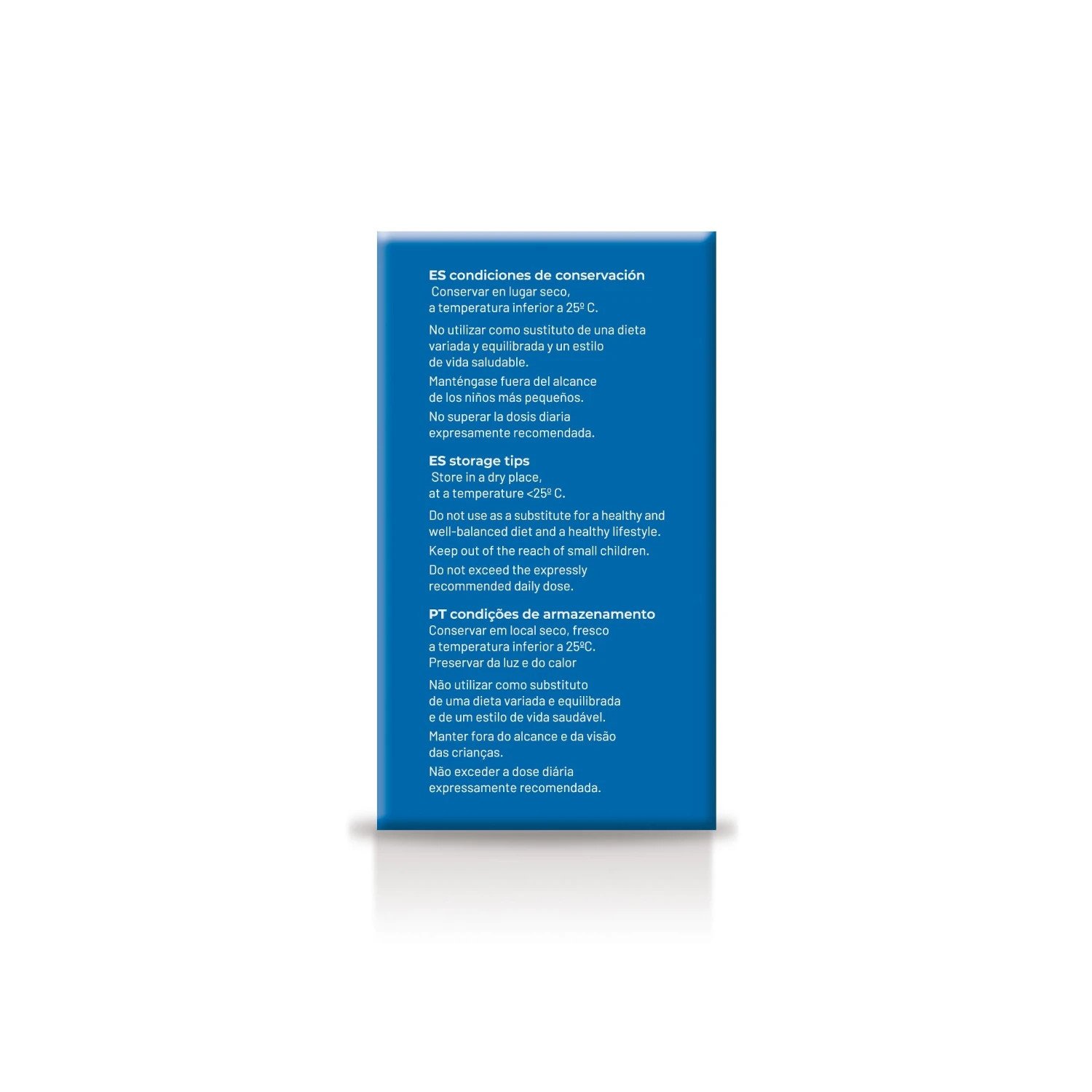 Conservar en lugar seco, fresco y no expuesto a la luz solar, a temperatura <25ºC.