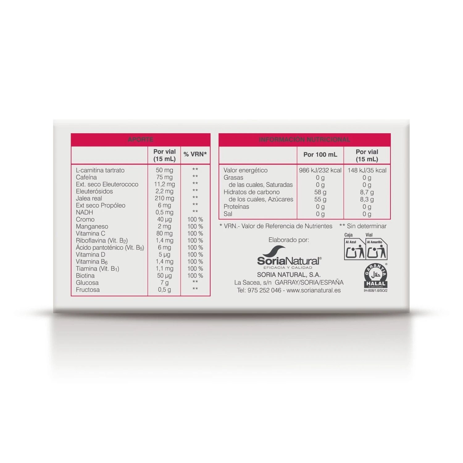 Contiene cafeína (75 mg/vial). No se recomienda para niños ni mujeres embarazadas.