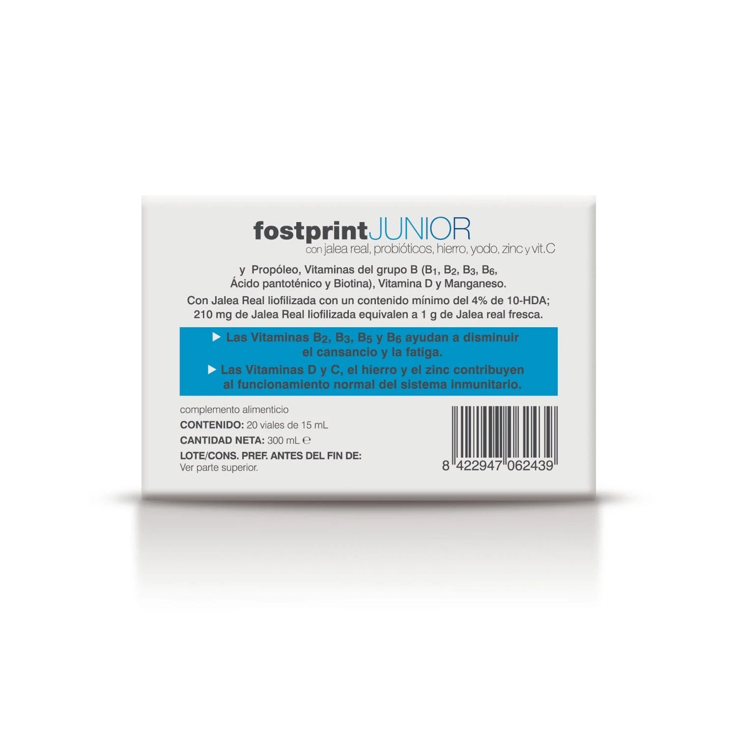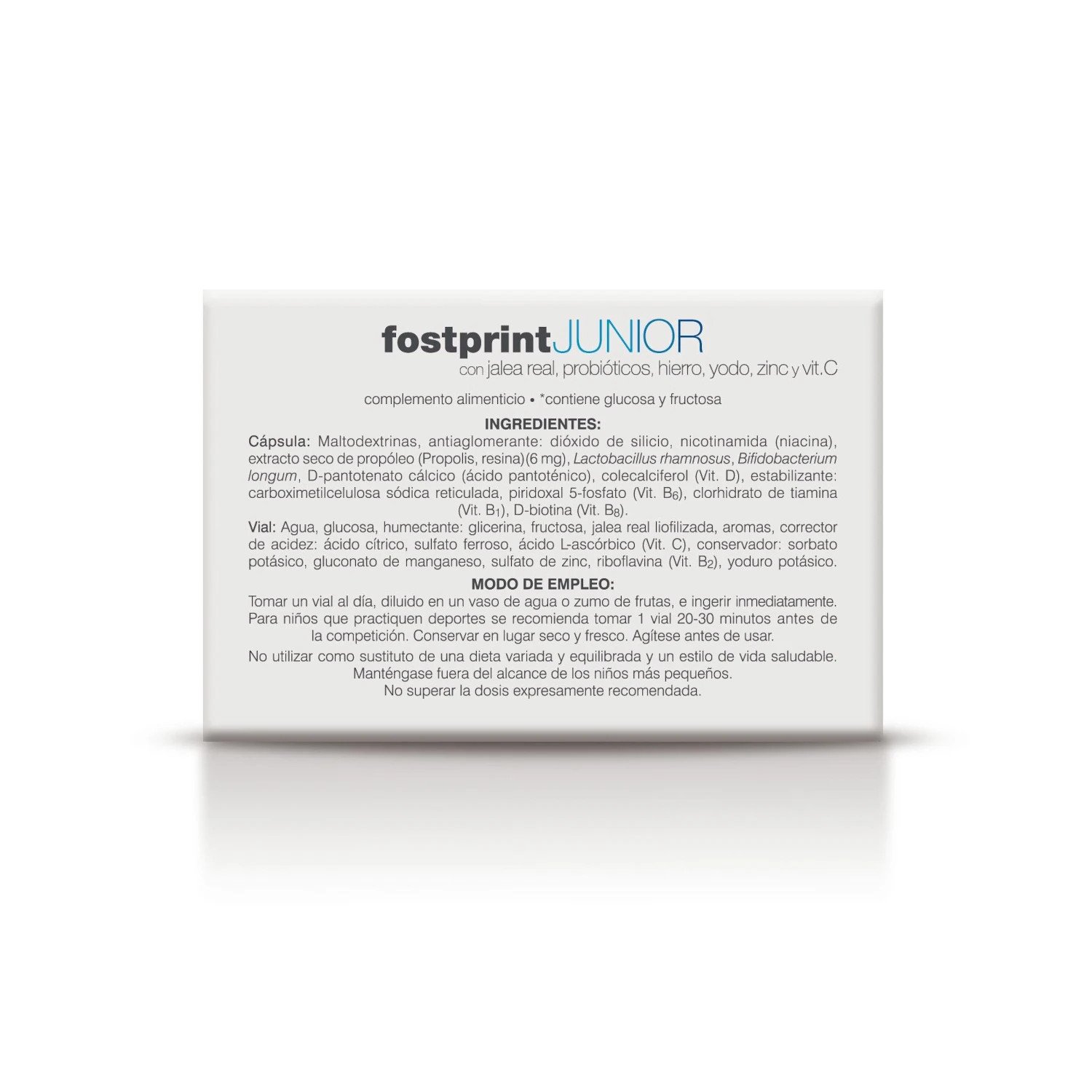 Fost Print Junior, con probióticos, hierro, zinc, yodo, vitamina C y Jalea Real liofilizada, propóleo, Vitaminas del grupo B (B1, B2, B3, B6, Ácido pantoténico y Biotina), Vitamina D y Manganeso, ayudan a recuperar el ritmo diario.