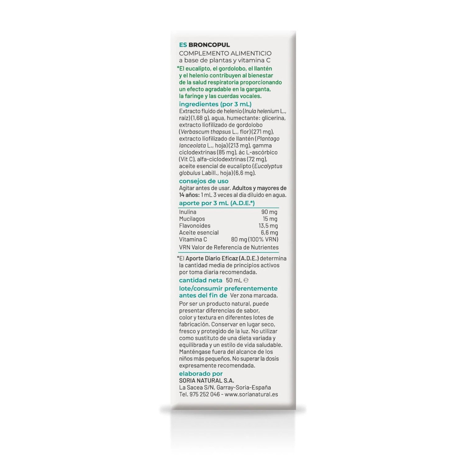 Composor 12 Broncopul de Soria Natural es un complemento alimenticio formulado para apoyar la salud del sistema respiratorio. Este producto combina extractos de plantas medicinales, aceites esenciales y vitaminas en una base de glicerina vegetal, ofreciendo propiedades mucolíticas, expectorantes, antitusivas y antisépticas respiratorias. Su acción ayuda a fluidificar el moco, facilitando su expulsión y mejorando el bienestar respiratorio.